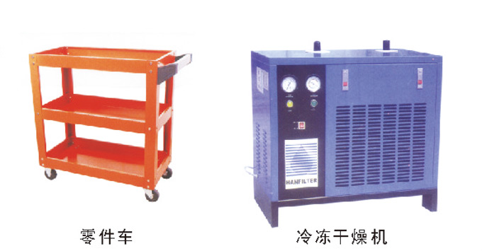储气罐,空气过滤器,组合式工具架,工具车,车间集中尾气抽排系统,空气压缩机,零件车,冷冻干燥机。